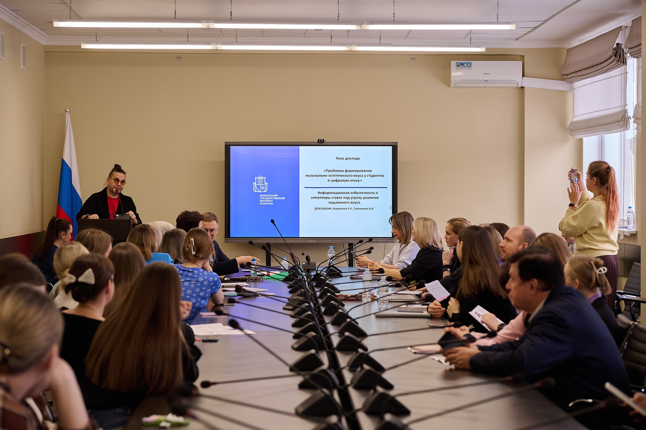 Факультет музыкального искусства провел дискуссионно-педагогическую панель «Профессиональное музыкальное образование в XXI веке: достижения, кризисные явления». Идейный вдохновитель мероприятия — декан факультета, профессор Н.И. Ануфриева. Модератором выступила профессор А.Г. Труханова. Участники обсудили цифровые трансформации в обучении, новые педагогические форматы и вопросы сохранения традиций, включая трансляцию песенного фольклора и музыкально-просветительские проекты.